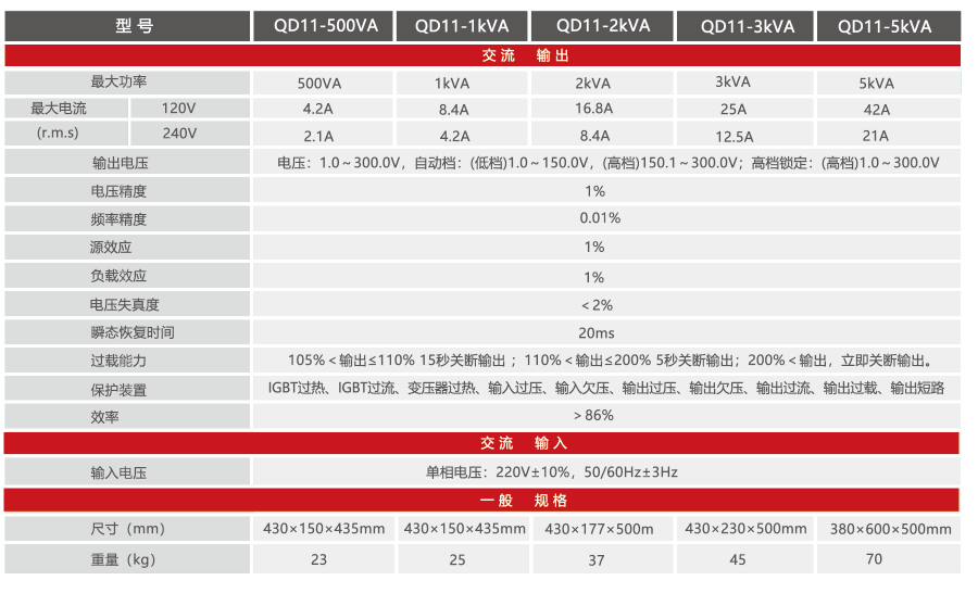 QD11系列單相輸出系列交流電源供應器采用數字化控制、瞬時波形控制及高頻脈寬調制等技術,具有響應速度快、輸出精度高、輸出波形純凈、體積重量小、可靠性高等優點。該產品在滿足客戶常規功能需求的基礎上,更能做到“一機多用”,是傳統行業需求的完美解決方案及設備更新換代的完美替代方案。