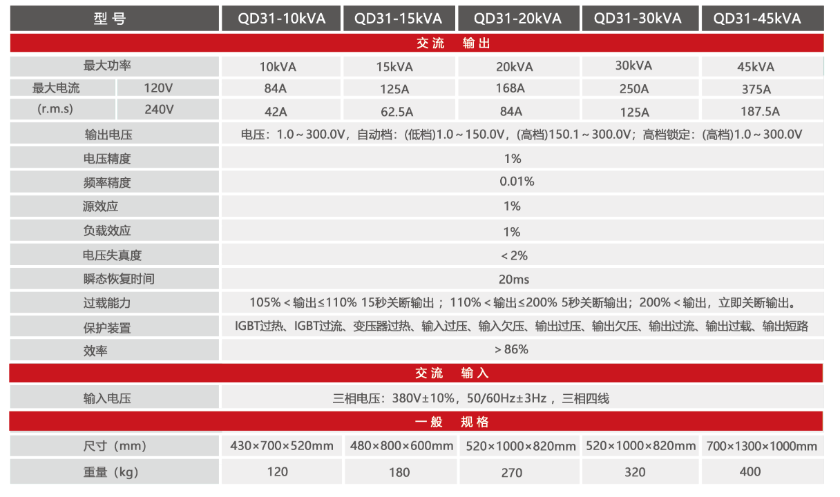 QD31系列單相輸出系列交流電源供應器采用數字化控制、瞬時波形控制及高頻脈寬調制等技術,具有響應速度快、輸出精度高、輸出波形純凈、體積重量小、可靠性高等優點。該產品在滿足客戶常規功能需求的基礎上,更能做到“一機多用”,是傳統行業需求的完美解決方案及設備更新換代的完美替代方案。