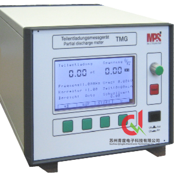 PARTIAL DISCHARGE METER  TMG  With the PD meter TMG you can do the following tests, according to standards IEC 60 270,and VDE 0434.     Easy handling, robust for rough use in test laboratory and on-site     Partial discharge displays: digital and quasi-analogue with bargraph; digital and phase resolved to the sine wave; digital and cloud display     Two time windows for blanking of phase synchronized interferences     RS 232, USB interface  (IEEE 488, RS485 optional)     Including measuring impedance and measuring cable     Auto range, automatic and manual selection of PD- measuring ranges     Options: -Peak voltage measurement  ?/ √ 2 acc. to IEC 60060  and  true  Urms - RIV- measurement in μV acc. to NEMA107 /Ansi63.2 - Special module for measurement in C  /sec and dB